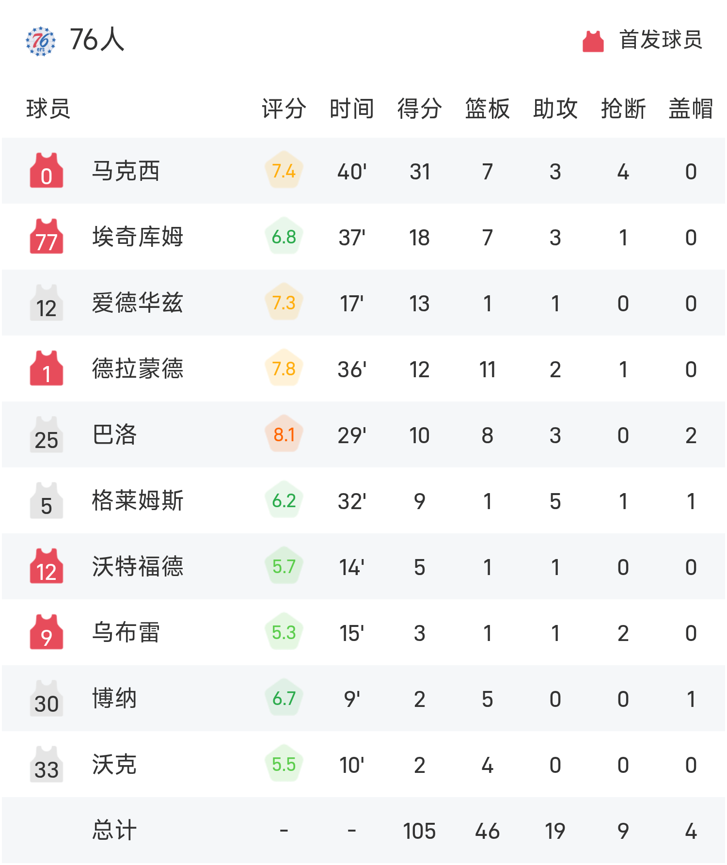 6686体育平台11月15日讯 25/26赛季NBA 常规赛 NBA杯分组赛,活塞对阵76人。双方全场战罢,活塞114-105战胜76人。格林得到21分9板3助率队取胜,马克西空砍全场最高的31分7板3助。