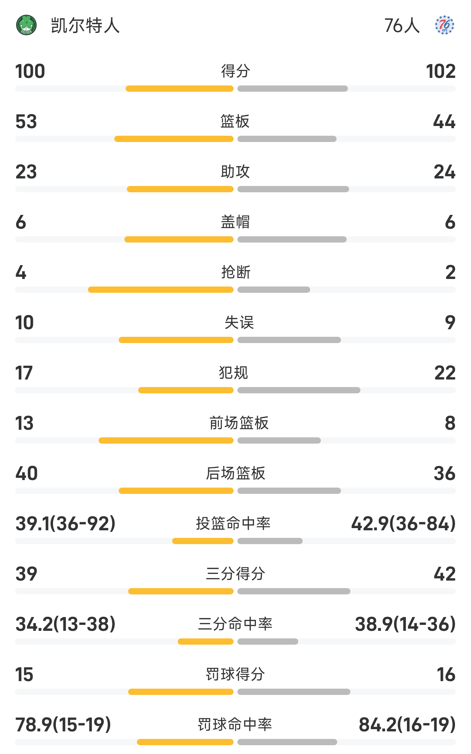 NBA战报:马克西21分9助攻,76人102-100险胜凯尔特人