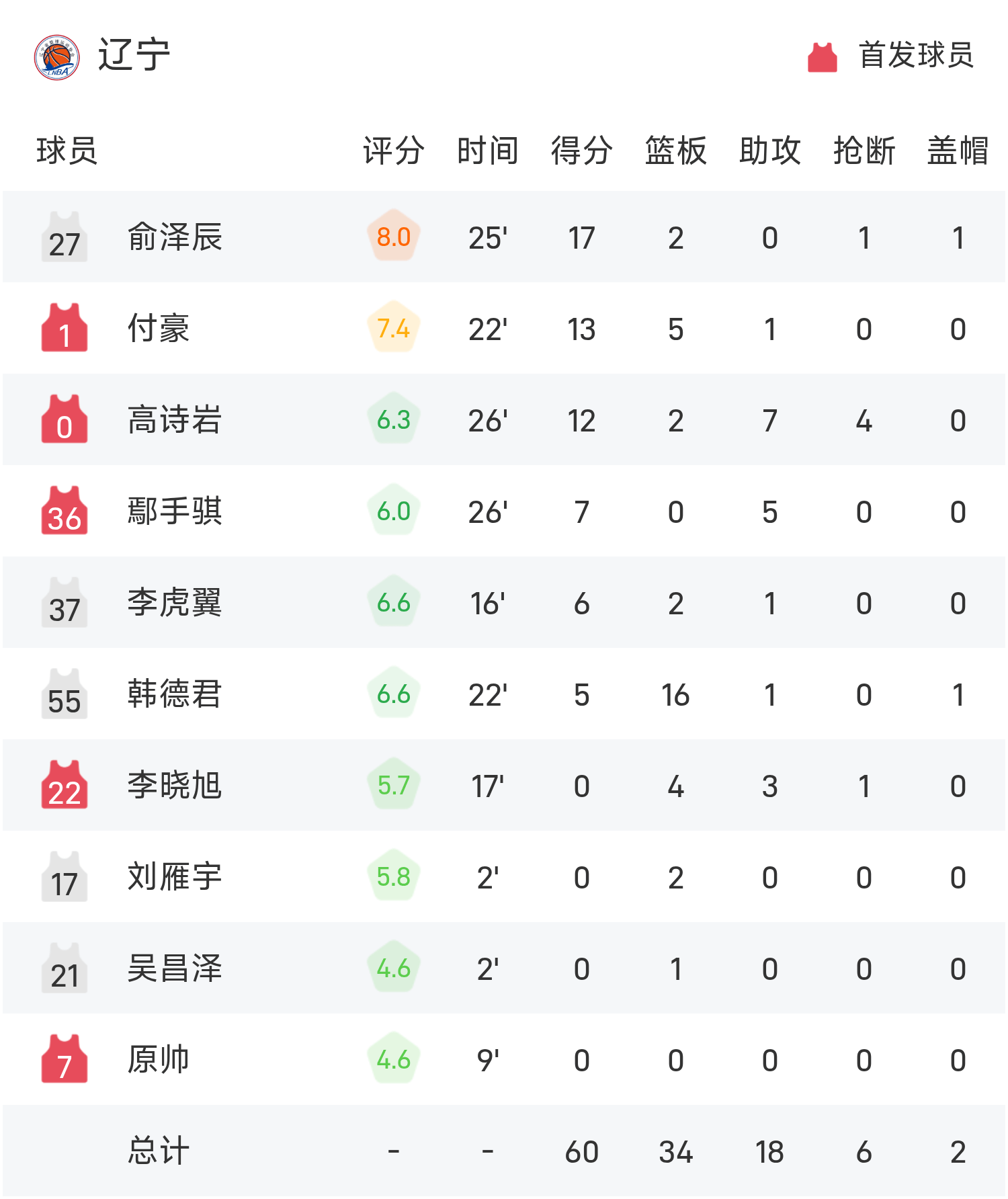 周琦得到16分13板1助率队取胜,俞泽辰空砍全场最高的17分2板,老队员韩德君迎来最后一舞抢下16抢篮板。