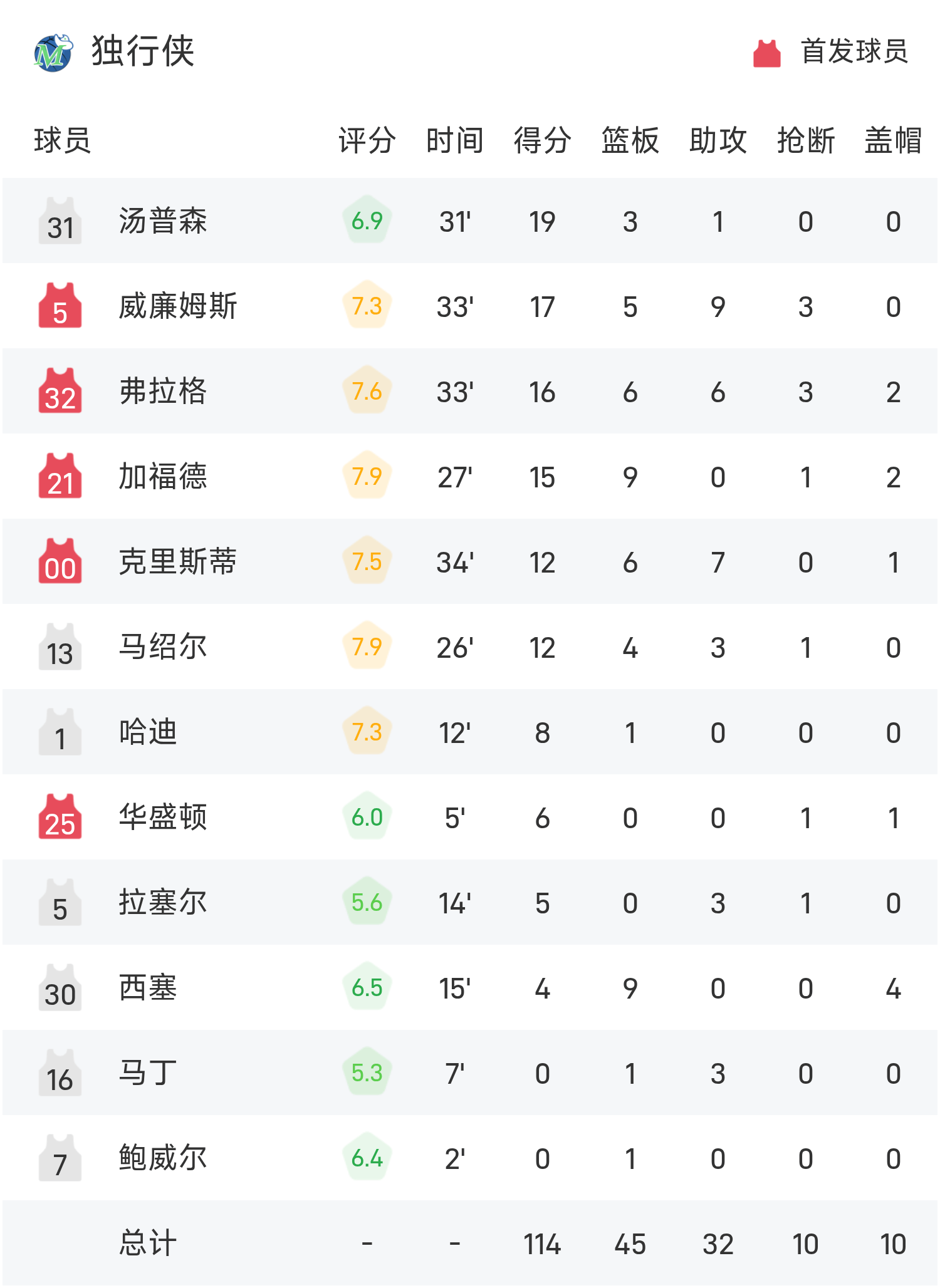 双方全场战罢,独行侠114-122不敌太阳。