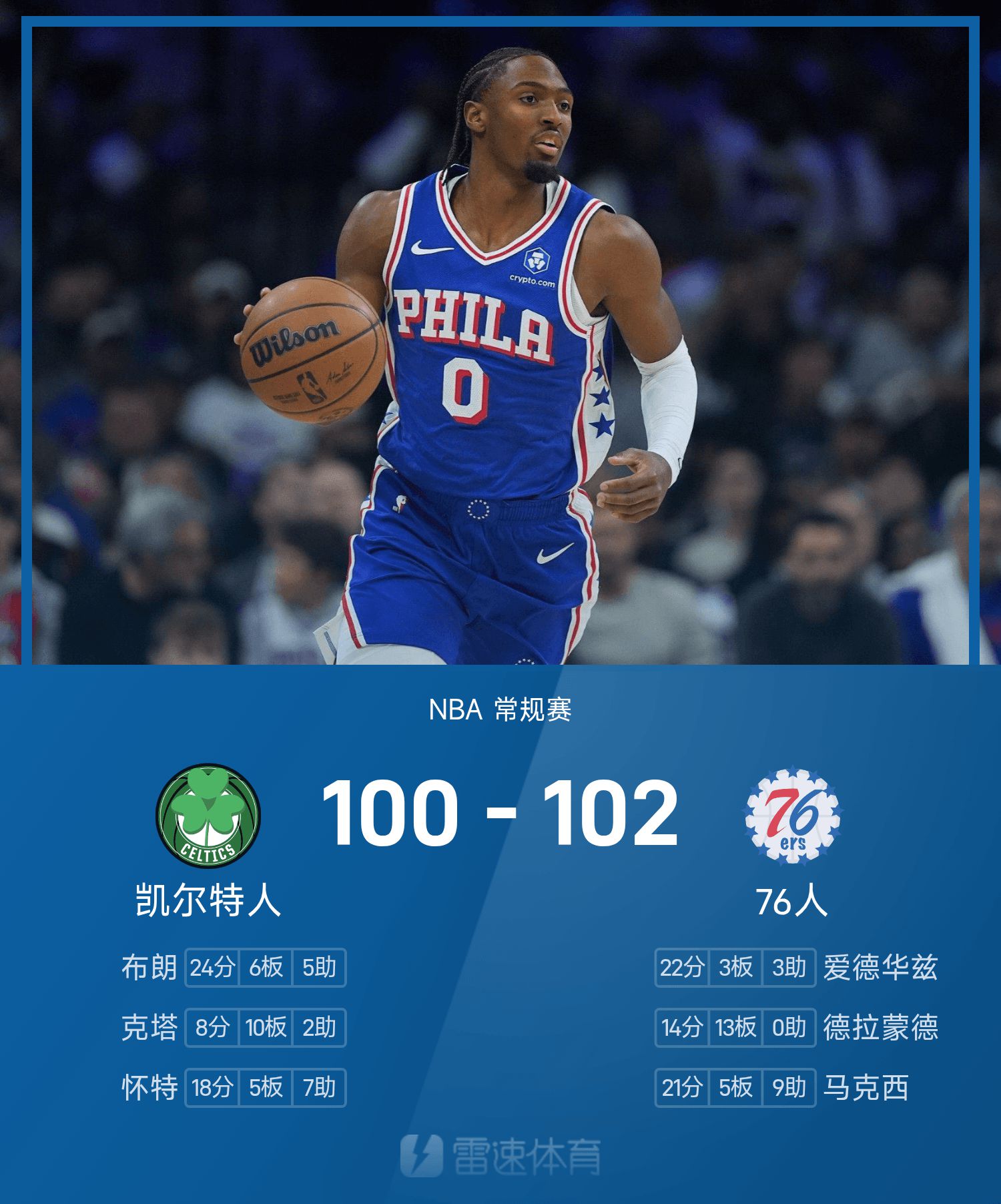 马克西砍下21分9助攻串联球队,76人2分险胜绿军。