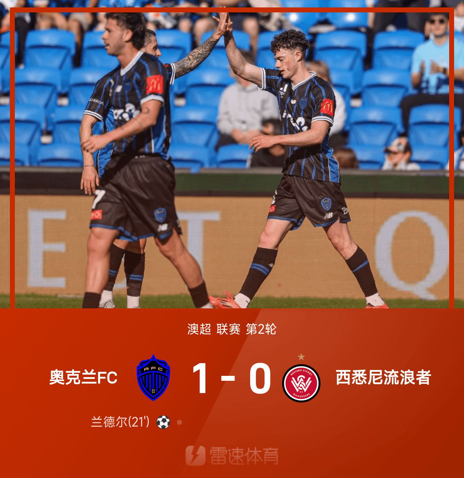 6686体育平台10月25日讯 25/26赛季澳超联赛事第2轮,奥克兰FC主队场以1-0力克西悉尼流浪者。上半时竞赛,兰德尔外围射门建功,助奥克兰城取得领跑位;下半时竞赛,双方皆未能破门。