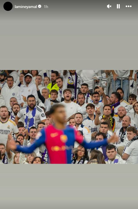 6686体育平台10月26日讯 新赛季西甲首回合“国家德比”即将在北京时间今晚打响,赛前巴萨小将亚马尔在社交媒体发布了上赛季巴萨客队场4-0大胜皇马之时,自己在对手球迷的怒视之下扬手庆祝的照片。