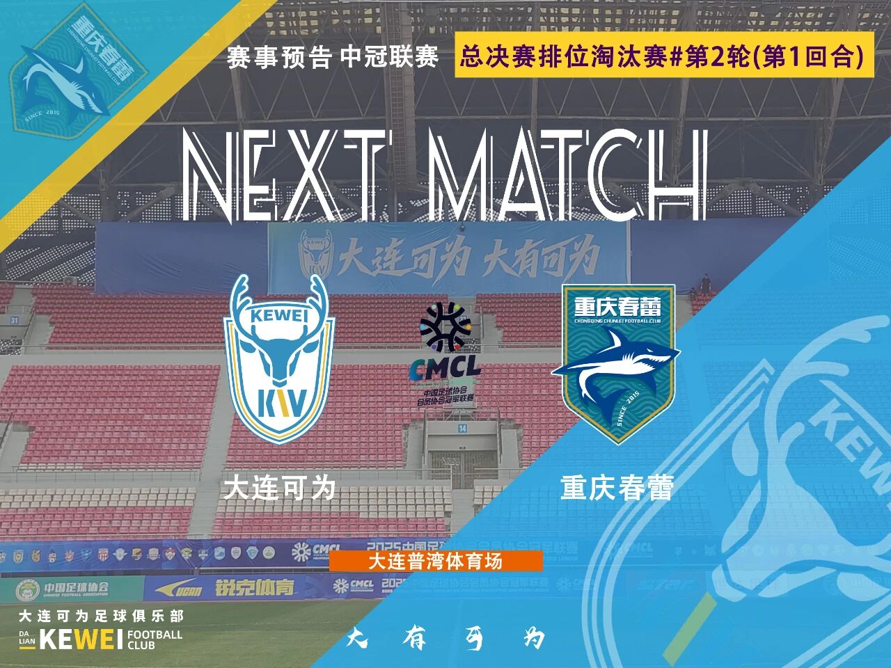北京时间2025年10月25日,2025中国足球协会会员协会冠军联赛事总总决赛排位淘汰战第一轮(第2回合),大连可为在主队场大连普湾体育场再次对阵五华华京。上半场第22分钟,对手通过迅速反击打入一球,大连可为0-1。12分钟后,于泽源突破至端线附近倒三角传接,张达驰跟进将球打进!大连可为1-1!下半场第73分钟,于泽源左路起球传至三秒区,葛宇翔极限顶球回做,门前黄剑鸣顶球一顶将球打进,大连可为2-1!2-1的赛果分也保持到了终场,大连可为在主队场逆转五华华京,并以两回合4-1的总赛果分淘汰对手晋级下一轮!