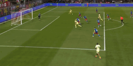 43’哈里斯抓住对方球员差错抽射攻门,皮球被守门员扑出
