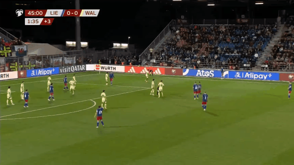 威尔士首发阵容:1-达洛、15-达席尔瓦、6-罗登、3-威廉姆斯、4-劳勒、20-詹姆斯(66’7-布鲁克斯)、5-阿姆帕杜、19-托马斯(83’11-约翰逊)、17-詹姆斯(77’10-库伦)、18-哈里斯(66’9-库马斯)、23-布罗德黑德(65’8-科维尔)