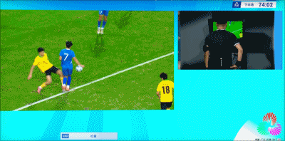 36’张志雄三秒区内倒地,主裁判判没有吹罚十二码