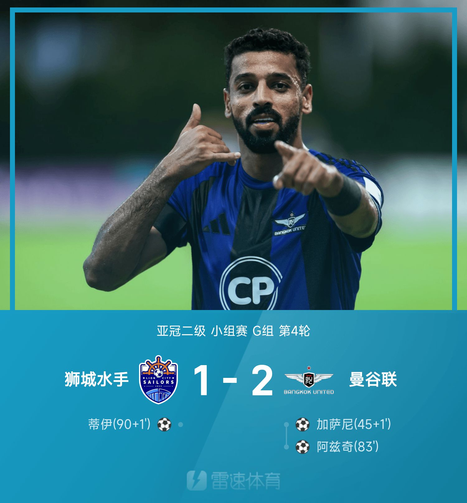 亚冠二级战报:加萨尼、阿兹奇破门,曼谷联2-1狮城水手