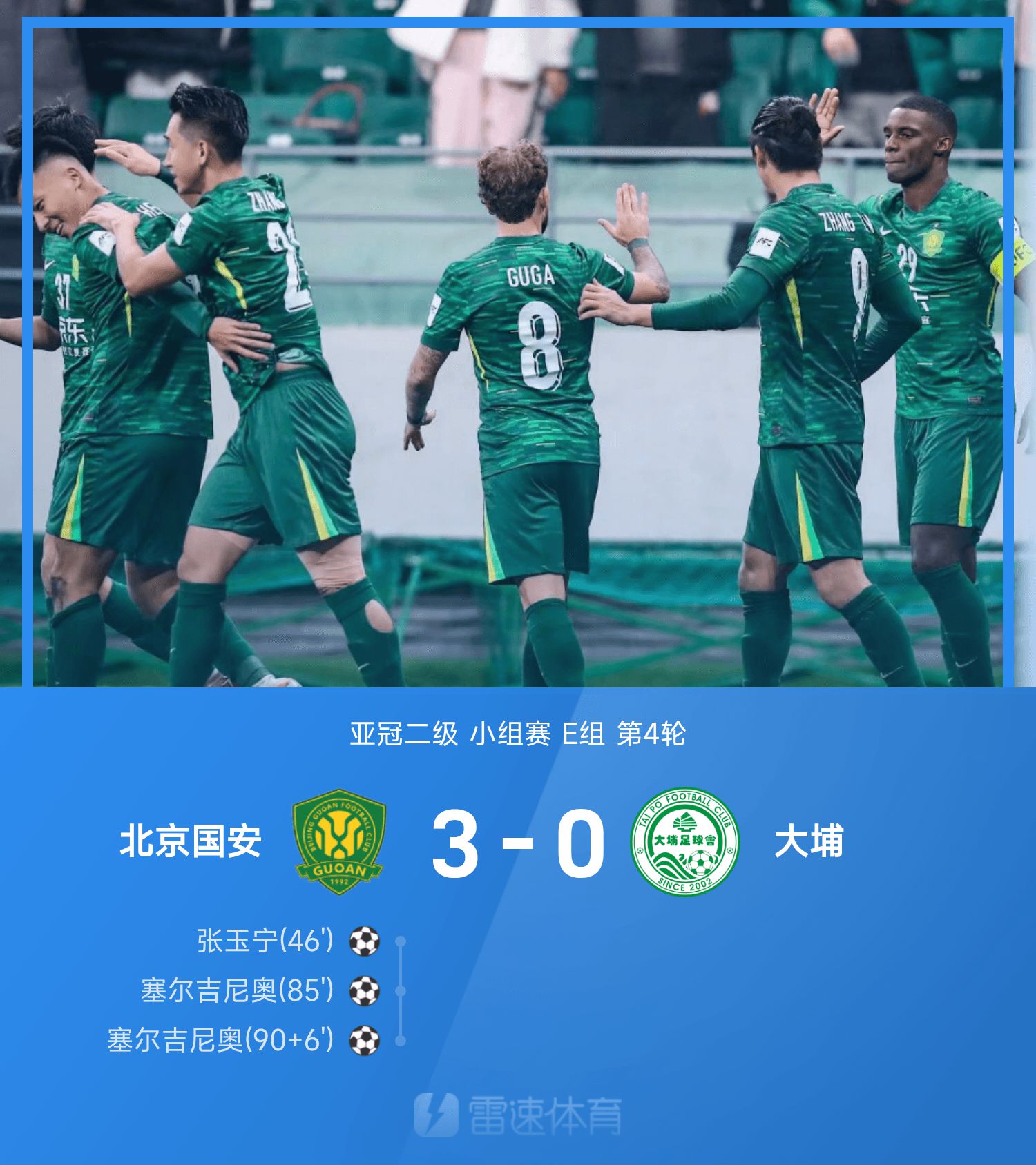 亚冠二级战报:张玉宁破僵、塞鸟双响,国安3-0大埔取首胜