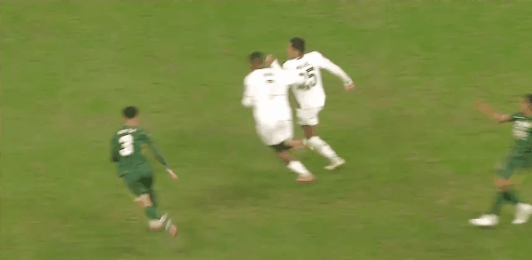 42’张玉宁遭对手胯下运球之辱,法比奥为队友出头推搡对方