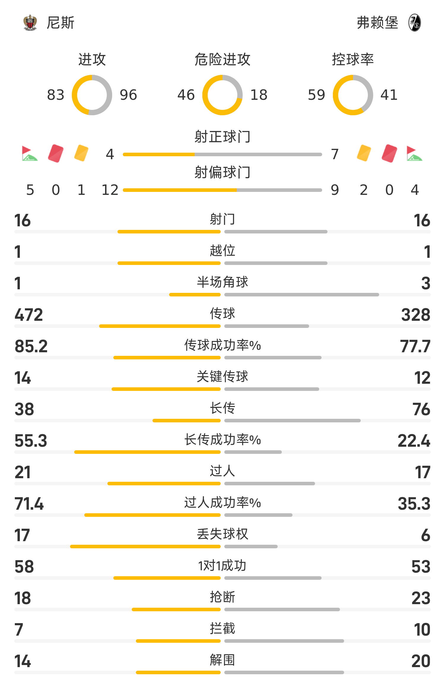 63’尼斯围攻对手,戈维亚吊射击中横梁,萨梅德跟进射门稍稍高出横梁